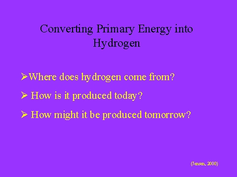 - Produced today: hydrogen is a common material but exists mostly in chemically bonded forms such as in water or organic materials. Some form of energy must be available to liberate it from binding, enabling it to be a fuel. Hydrogen production involves tapping into primary energy sources such as fossil fuels, wind, water, or sunlight to strip hydrogen from molecules found in nature.